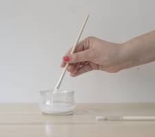 Para este paso necesitarás alcohol y bastoncillos. Sumerge el bastoncillo en alcohol y pásalo por todos los bordes que vas a pegar, deja que sequen por unos minutos y ya están listos para unirse.
